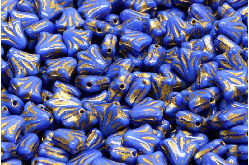 ユリの花ビーズ、37306 ゴールドライン (37306-54302)、ガラス、チェコ共和国