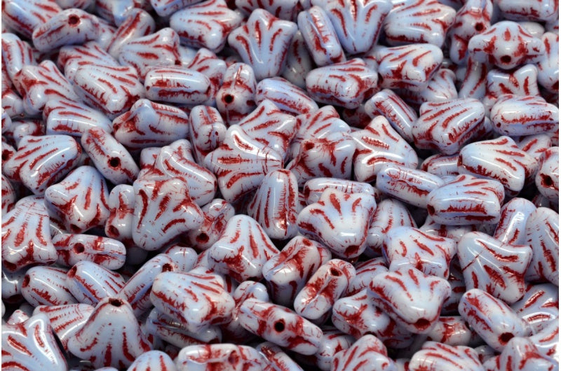 ユリの花のビーズ、ライトスカイブルーとレッドのライン(07314-54314)、ガラス、チェコ共和国
