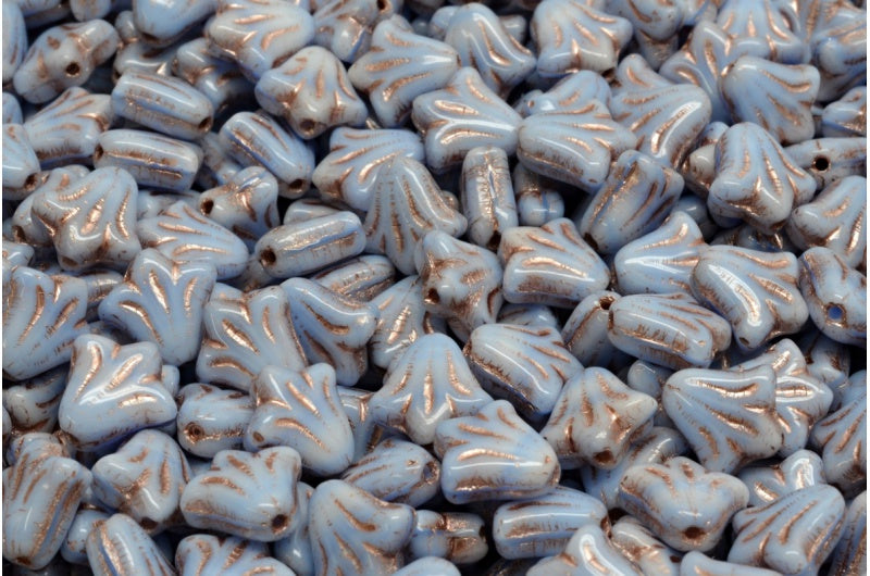 ユリの花のビーズ、ライトスカイブルーの銅の裏地付き(07314-54324)、ガラス、チェコ共和国