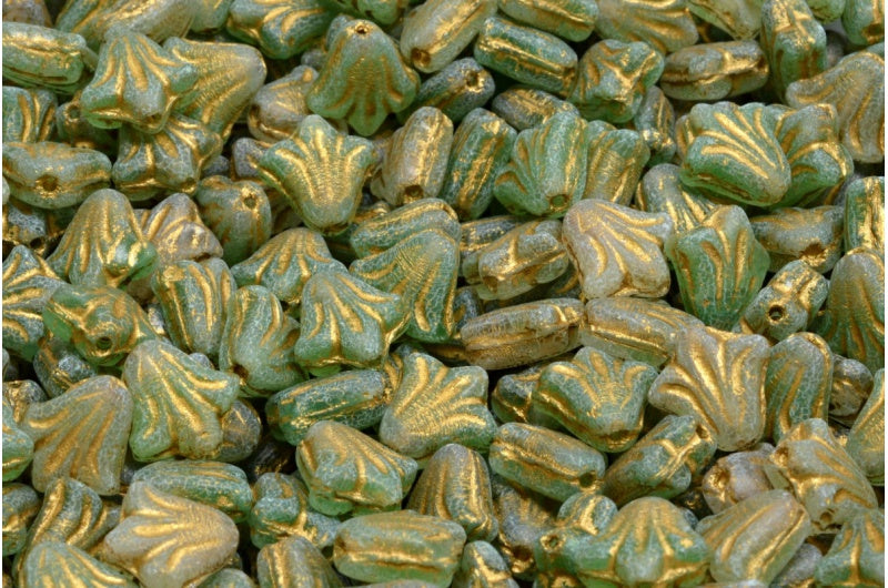 ユリの花ビーズ、R0053 マットゴールドライン(R0053-84100-54302)、ガラス、チェコ共和国