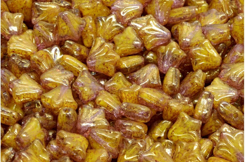 ユリの花のビーズ、イエローテラコッタバイオレット(R0812-15496)、ガラス、チェコ共和国
