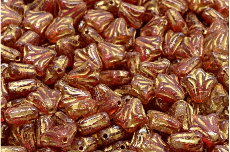ユリの花ビーズ、R0908 ゴールドライン (R0908-54302)、ガラス、チェコ共和国