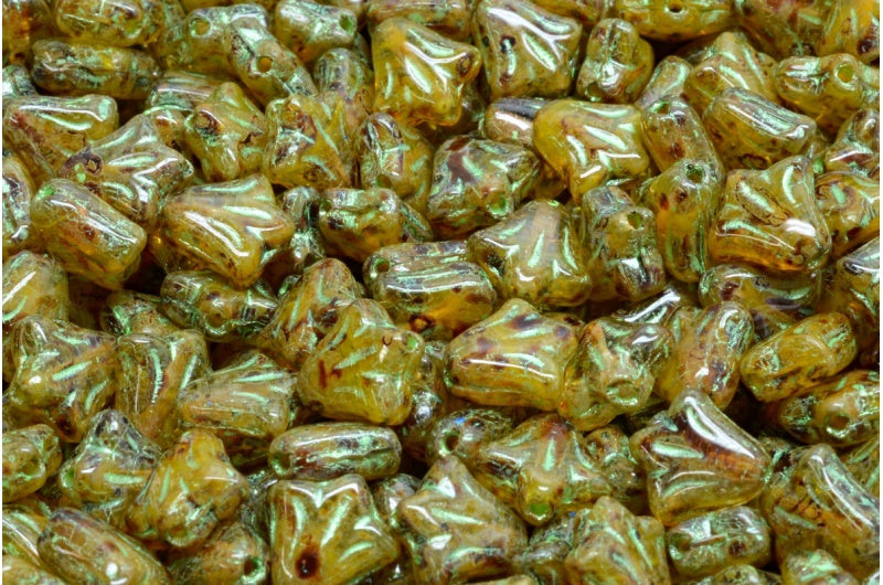 ユリの花のビーズ、R0911 トラバーチン 43813 (R0911-86800-43813)、ガラス、チェコ共和国