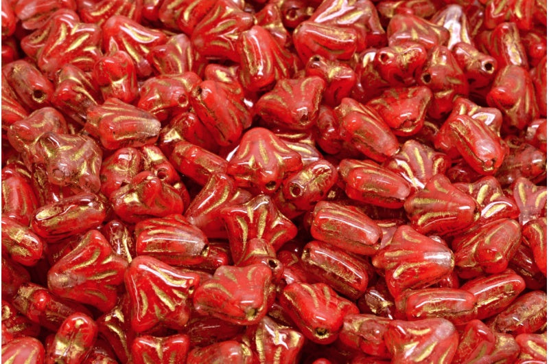 ユリの花のビーズ、赤ブロンズライン(R0930-54317)、ガラス、チェコ共和国