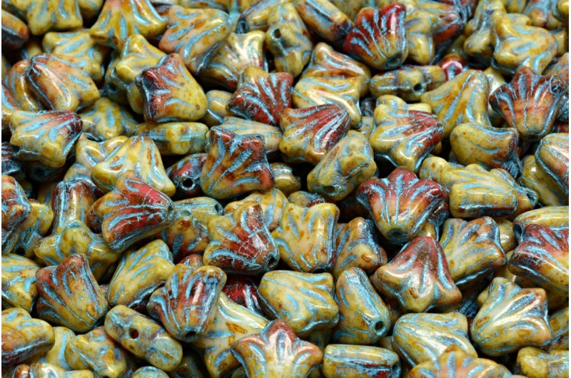 ユリの花のビーズ、R2930 トラバーチン ライトブルー ライン入り (R2930-86800-54308)、ガラス、チェコ共和国