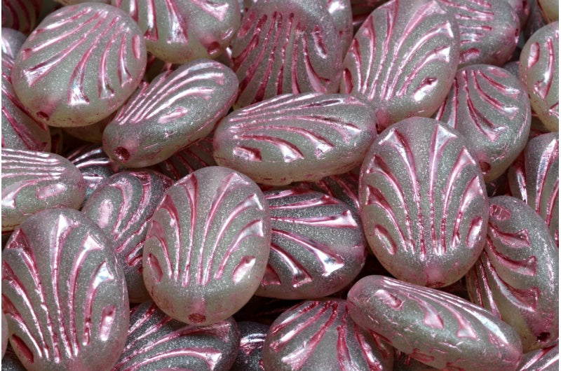 オーバル型、透明グリーンマットピンクライン入り(50500-84100-54321)、ガラス、チェコ共和国