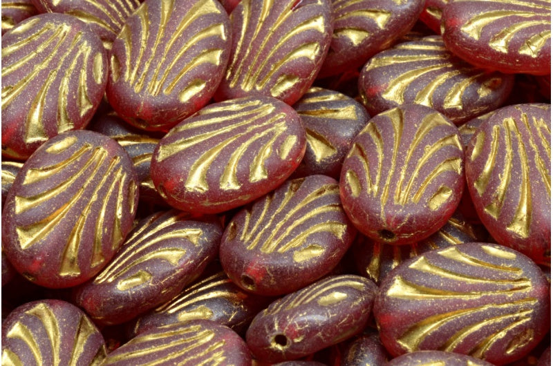 オーバル型、ルビーレッドマットゴールドライン(90080-84100-54302)、ガラス、チェコ共和国