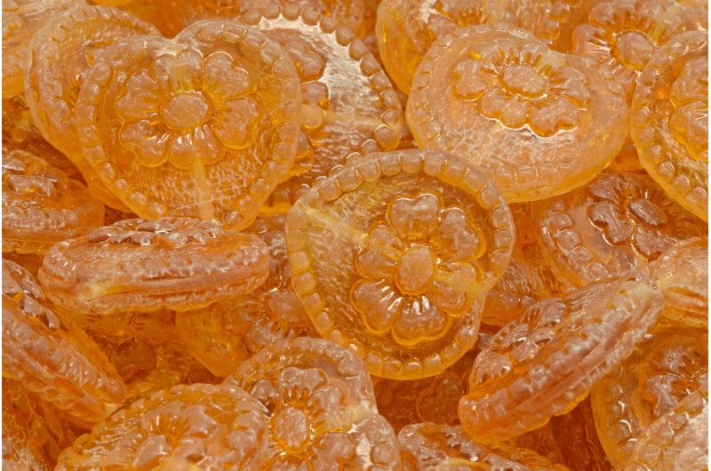 バラのハートビーズ、透明オレンジ(10060)、ガラス、チェコ共和国
