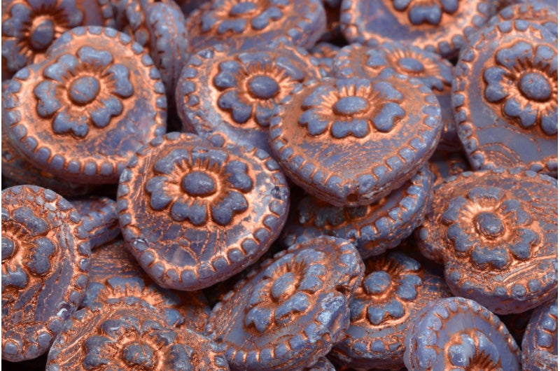 バラのハートビーズ、透明ライトアメジスト、銅の裏地付き(21000-54319)、ガラス、チェコ共和国