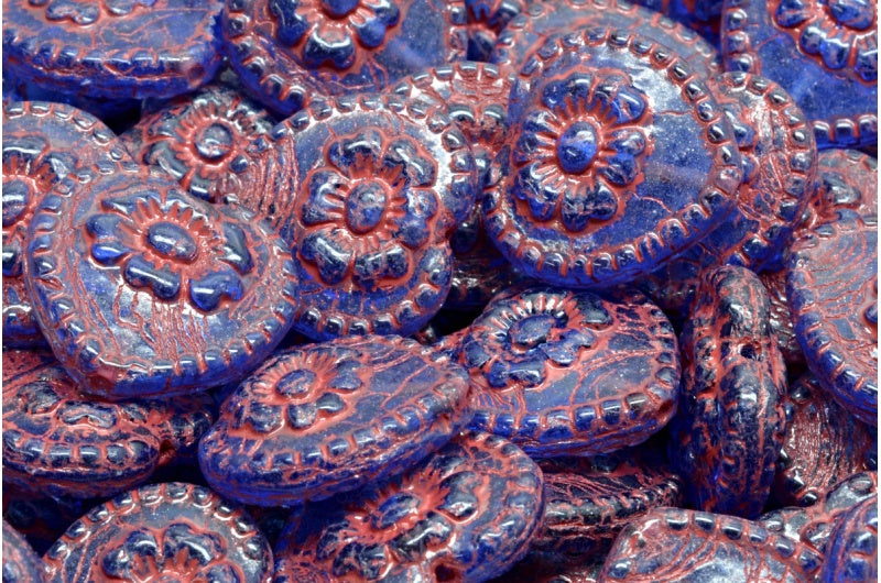 バラのハートビーズ、コバルトレッドライン(30050-54310)、ガラス、チェコ共和国