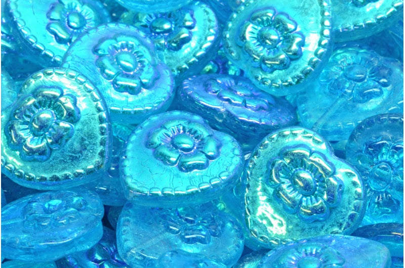 バラのハートビーズ、透明アクアAB(60010-28701)、ガラス、チェコ共和国