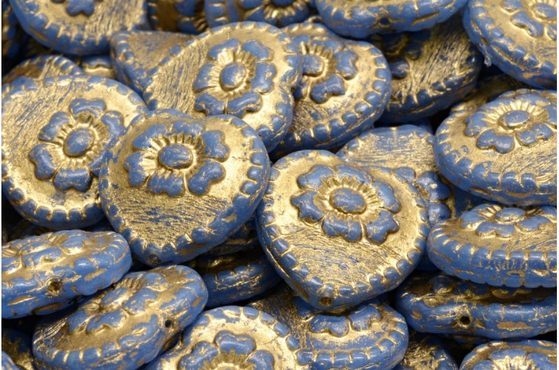 バラ付きハートビーズ、ブルーゴールドライン(62010-54302)、ガラス、チェコ共和国