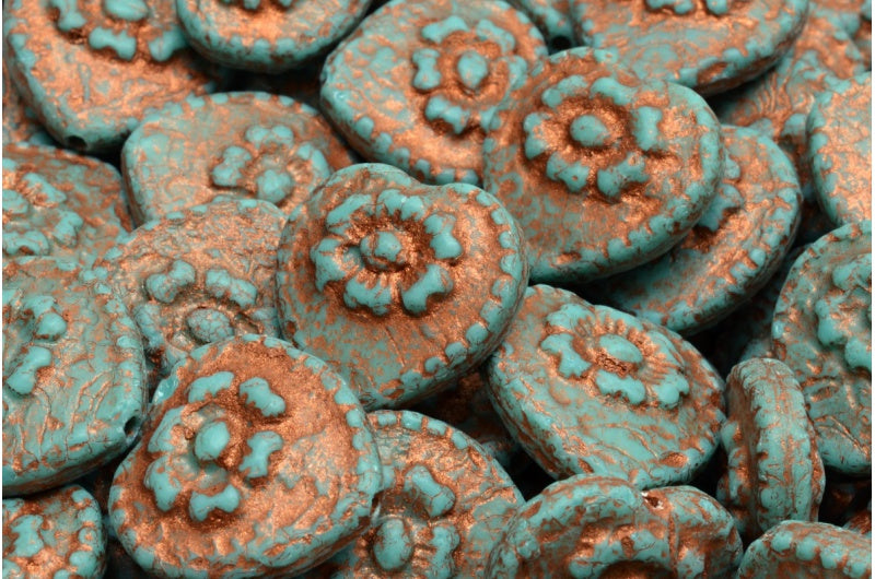 バラのハートビーズ、トルコ石エッチング銅線(63140-ETCH-54319)、ガラス、チェコ共和国