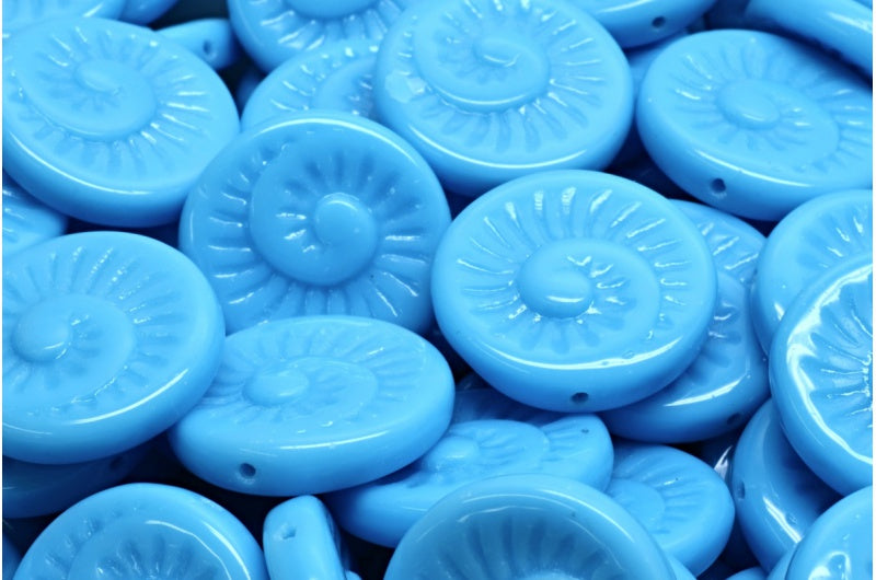 化石貝殻ビーズ、ターコイズブルー(63030)、ガラス、チェコ共和国