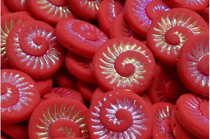 化石シェルビーズ、レッドアブフル(2Xサイド)マット(93180-28703-84100)、ガラス、チェコ共和国