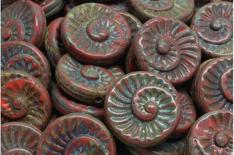 化石貝殻ビーズ、レッドトラバーチン(93180-86800)、ガラス、チェコ共和国