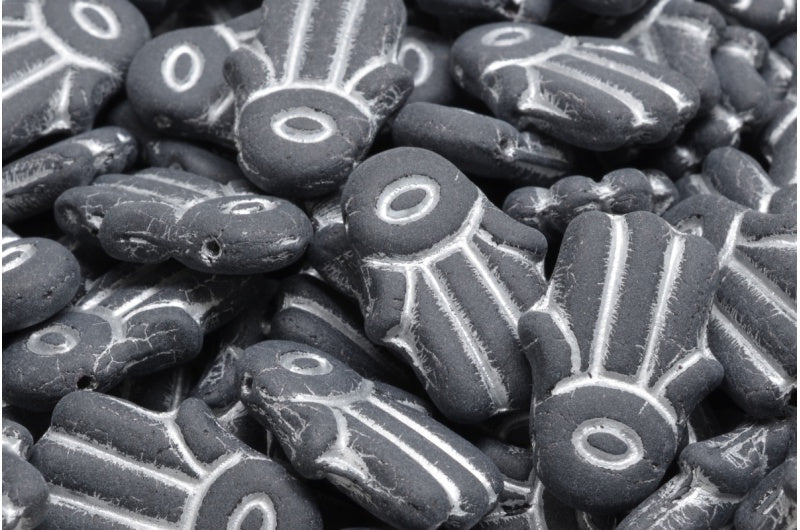 ハムサハンドビーズ、ブラックシルバーラインマット(23980-54301-84100)、ガラス、チェコ共和国