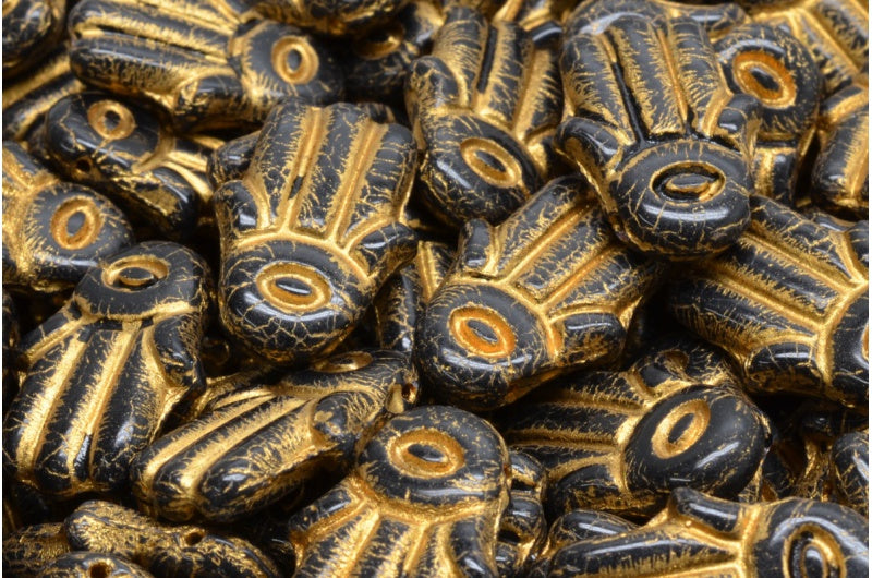 ハムサハンドビーズ、ブラックゴールドライン(23980-54302)、ガラス製、チェコ共和国