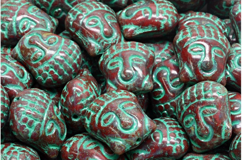 仏頭ビーズ、不透明レッドトラバーチン、ティールライン(93210-86800-54316)、ガラス、チェコ共和国