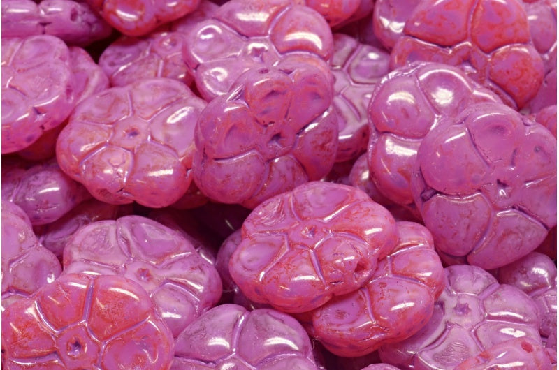 プリムローズフラワービーズ、R0932 ピンクスポット(R0932-33306)、ガラス、チェコ共和国