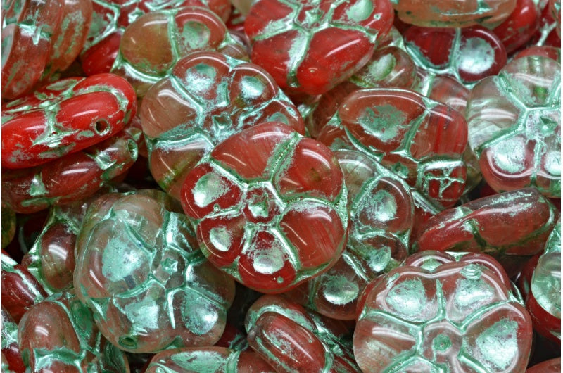 プリムローズフラワービーズ、R0932 グリーンライン(R0932-54322)、ガラス、チェコ共和国