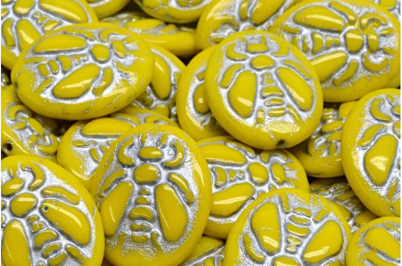 ビービーズ、イエローシルバーライン(83120-54301)、ガラス、チェコ共和国
