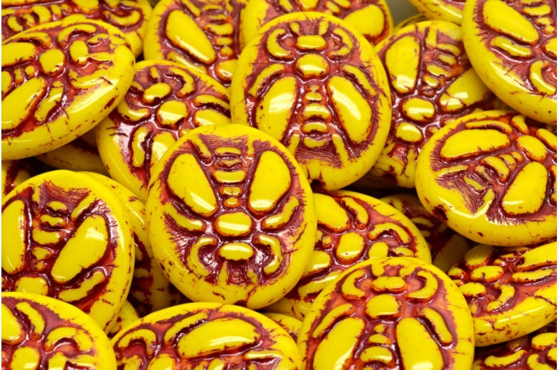 ビービーズ、黄赤ライン入り(83120-54314)、ガラス、チェコ共和国