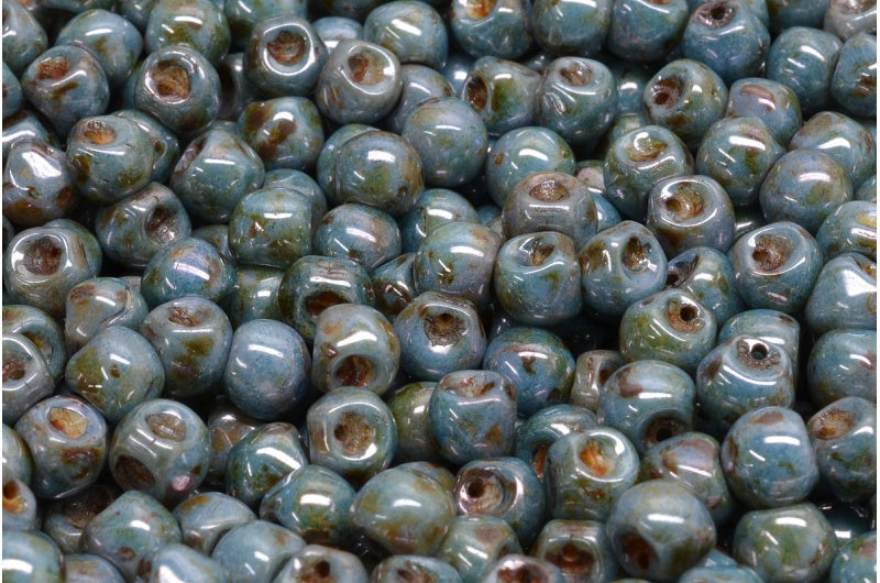 マッシュルームボタンビーズ、ホワイトステイン、ラスターブルー(02010-65431)、ガラス、チェコ共和国