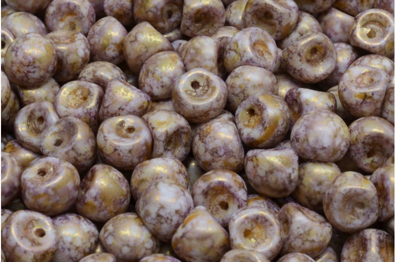 マッシュルームボタンビーズ、ホワイトマットセネガルバイオレット(02010-84100-15695)、ガラス、チェコ共和国