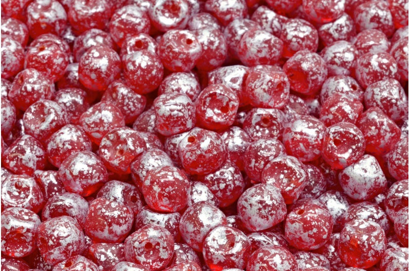 Mushroom Button Beads, Light Siam Silver Splash (90070-94400), Glass, Czech Republic