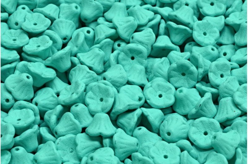 ベルフラワーカップビーズ、ホワイトブライトターコイズマット(02010-22M16)、ガラス、チェコ共和国