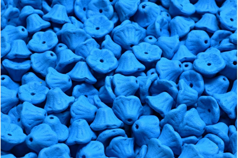 ベルフラワーカップビーズ、ホワイトブライトブルーマット(02010-22M19)、ガラス、チェコ共和国