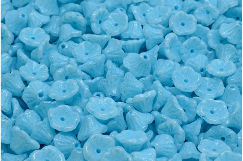 ベルフラワーカップビーズ、ホワイトライトブルーライン(02010-54308)、ガラス、チェコ共和国