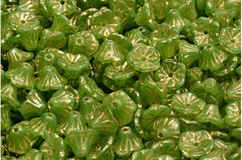 ベルフラワーカップビーズ、51400ゴールドライン(51400-54302)、ガラス、チェコ共和国