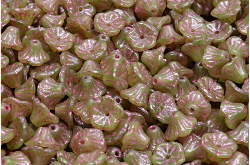 ベルフラワーカップビーズ、51400 ピンクライン入り (51400-54321)、ガラス、チェコ共和国