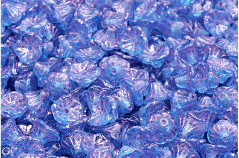 ベルフラワーカップビーズ、透明アクアピンク裏地(60010-54321)、ガラス、チェコ共和国