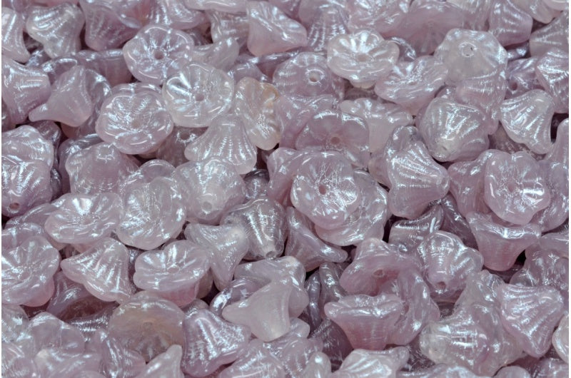 ベルフラワーカップビーズ、バイオレットホワイトライン(R0240-54312)、ガラス、チェコ共和国