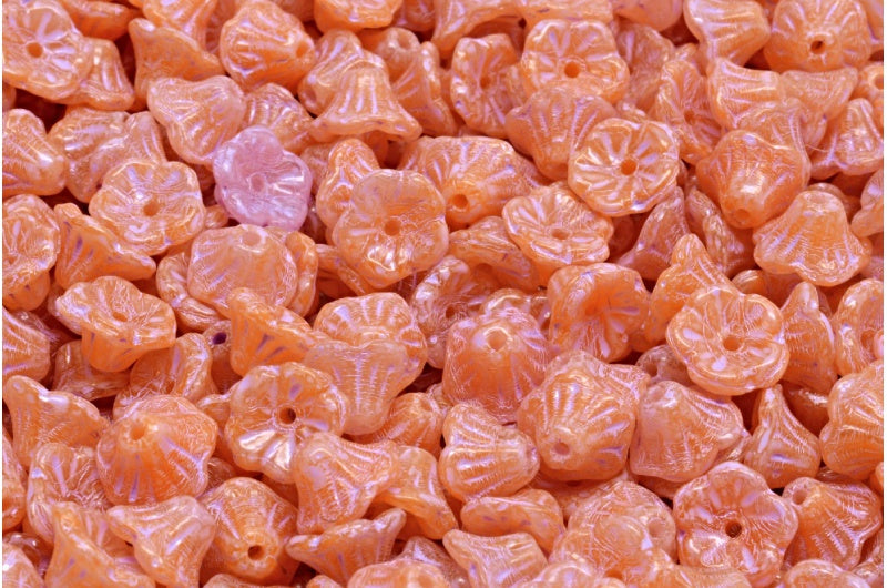 ベルフラワーカップビーズ、オレンジコールドパープルスポット(R0912-33305)、ガラス、チェコ共和国