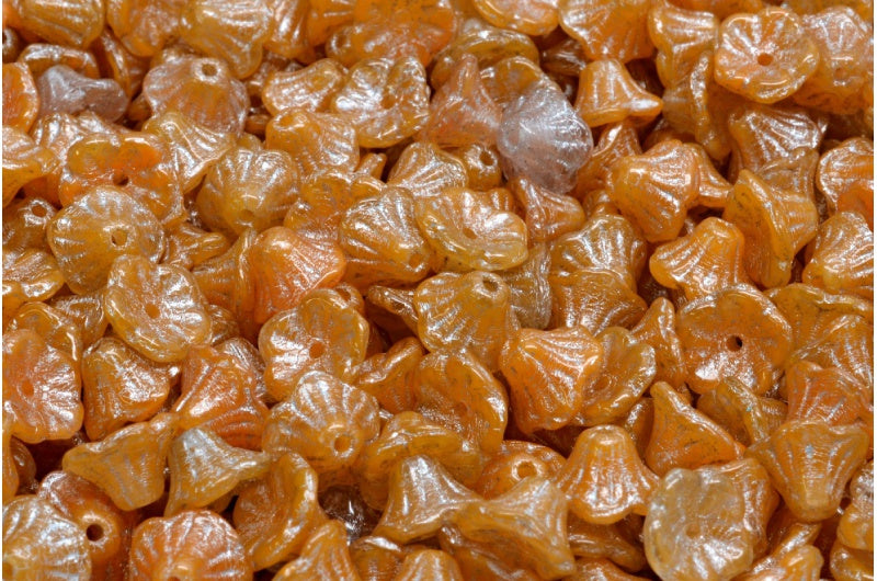 ベルフラワーカップビーズ、オレンジシルバーライン(R0912-54301)、ガラス、チェコ共和国