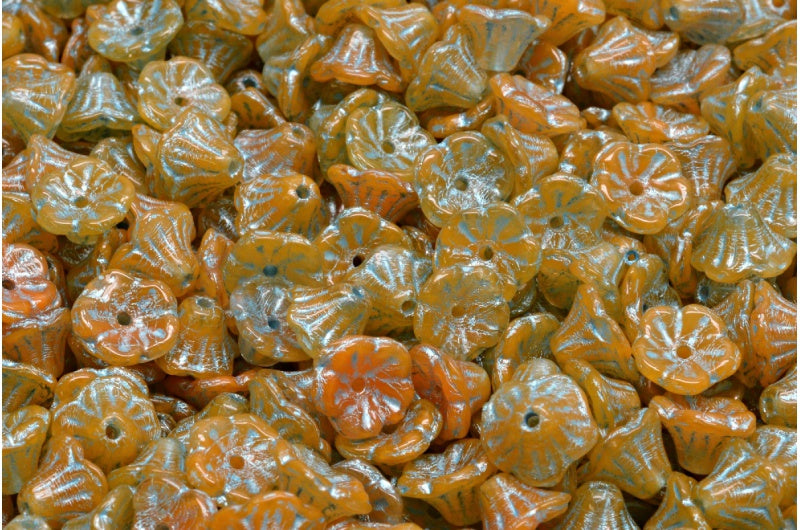 ベルフラワーカップビーズ、オレンジライトブルーライン(R0912-54308)、ガラス、チェコ共和国