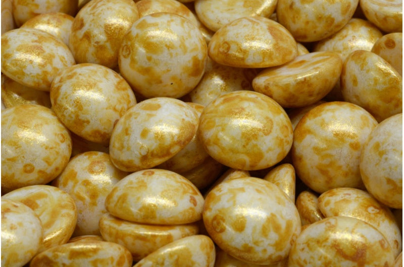 カボションビーズ、ホワイトゴールド光沢スポット(02010-65322)、ガラス、チェコ共和国