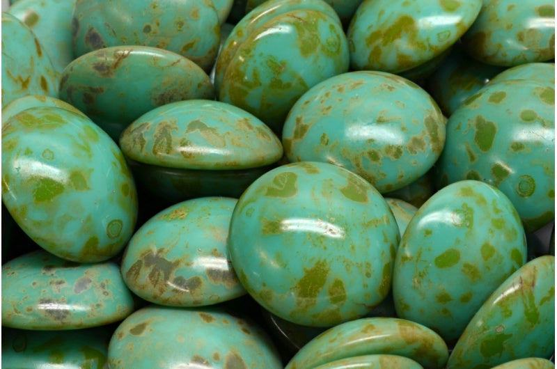 カボションビーズ、ターコイズトラバーチン(63130-86800)、ガラス、チェコ共和国