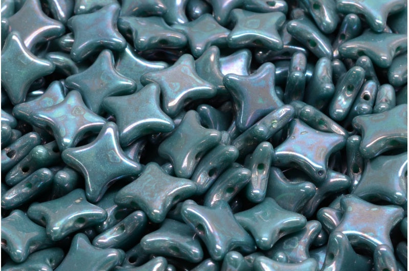 2穴フラットスタービーズ、ターコイズネビュラ(63130-15001)、ガラス、チェコ共和国