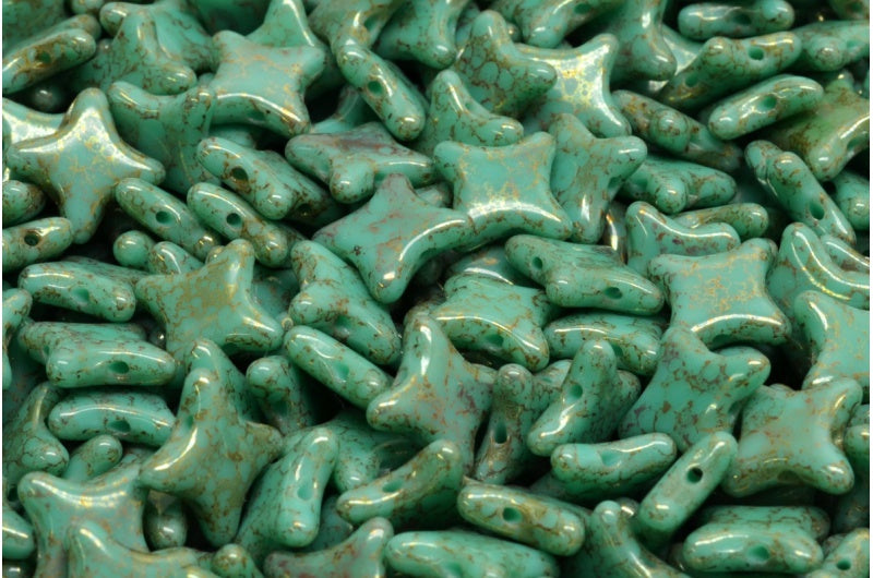 2穴フラットスタービーズ、ターコイズテラコッタレッド(63130-15495)、ガラス、チェコ共和国