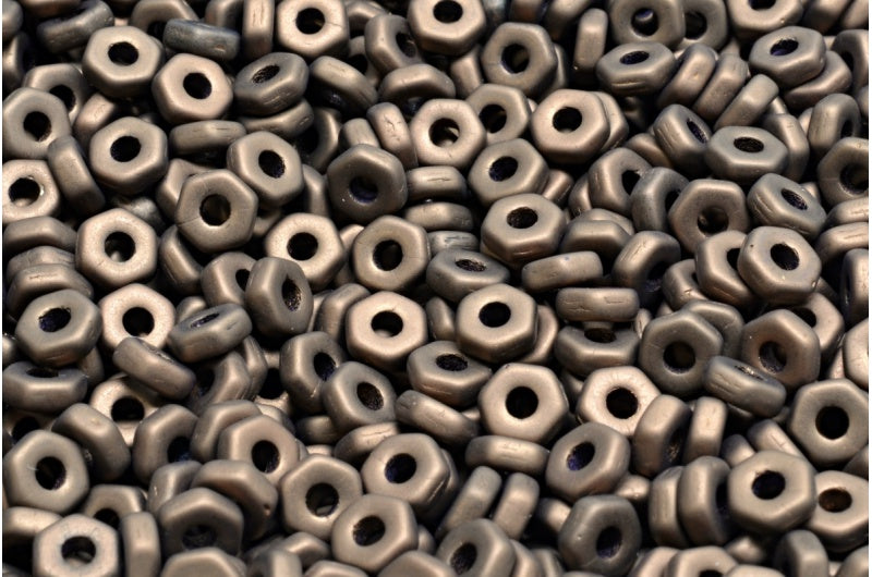 六角ナットビーズ、ブラックマットブロンズ(23980-84100-14415)、ガラス、チェコ共和国