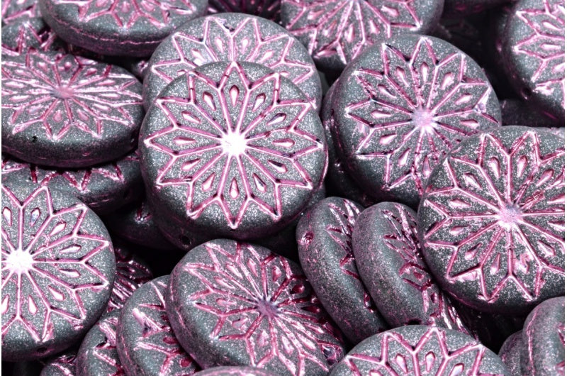 折り紙フラワービーズ、ブラックマットピンクライン(23980-84100-54321)、ガラス、チェコ共和国