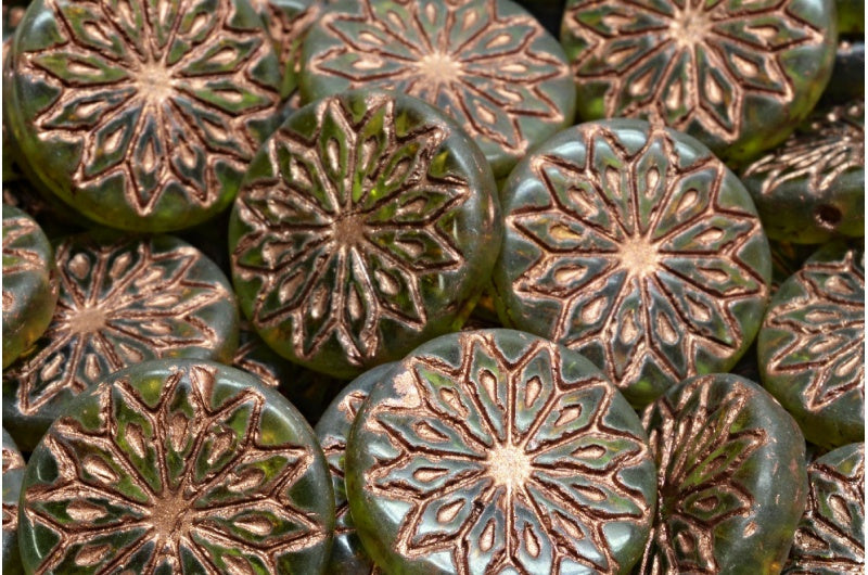 折り紙フラワービーズ、透明グリーン銅線入り(50230-54307)、ガラス、チェコ共和国