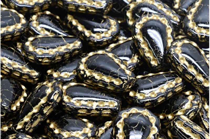 レースティアビーズ、ブラックゴールドライン(23980-54202)、ガラス、チェコ共和国