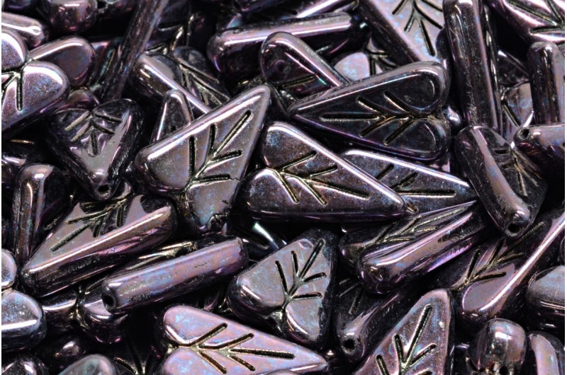 ハートリーフビーズ、ブラックネビュラ(23980-15001)、ガラス、チェコ共和国