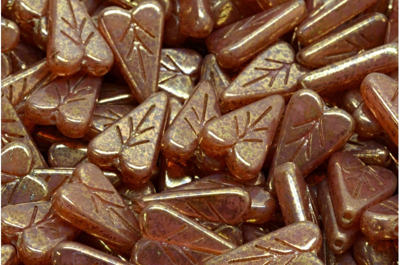 ハートリーフビーズ、オパールピンクセネガルバイオレット(71010-15695)、ガラス、チェコ共和国